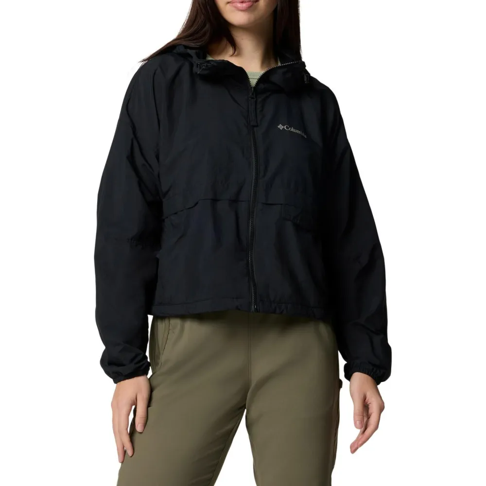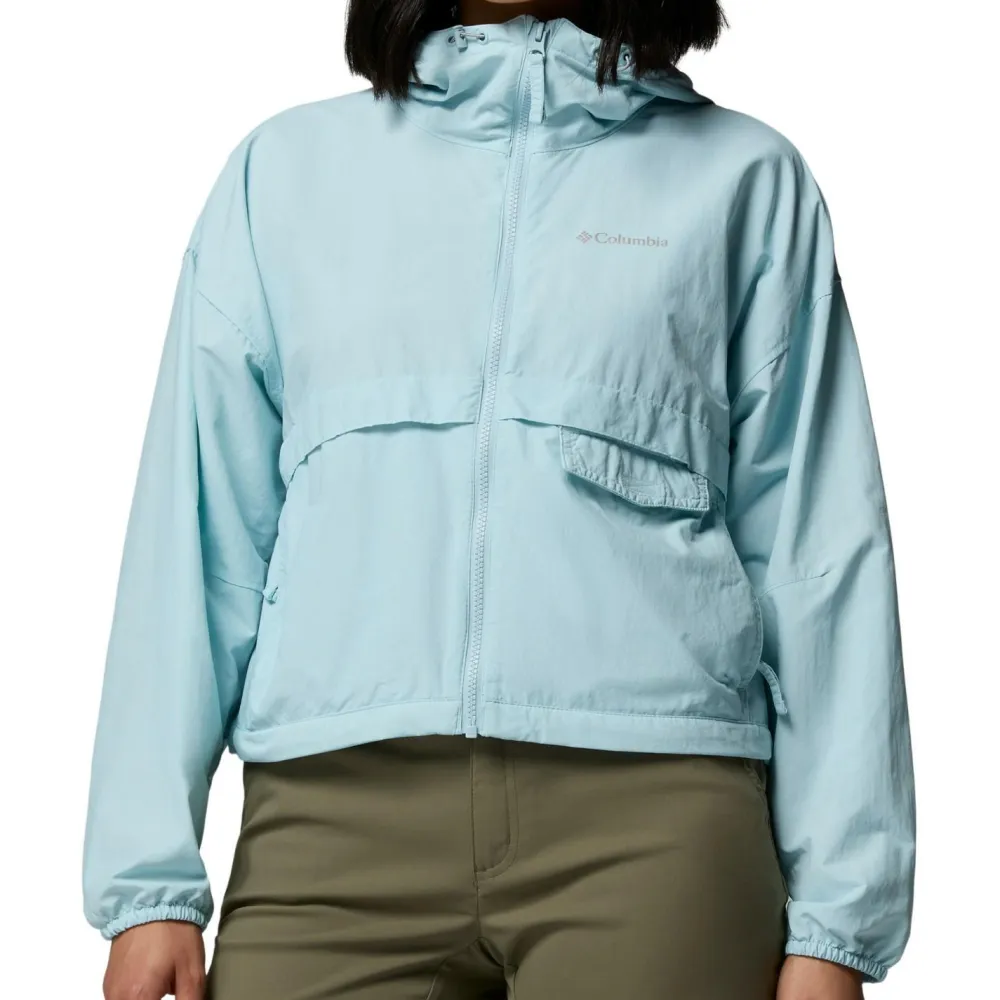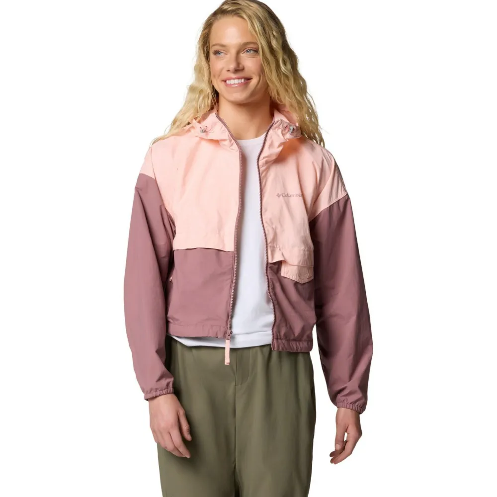Mit modischem Cropped Cut ist der Women’s Spire Valley Cropped Windbreaker von Columbia nicht nur funktionell, sondern auch in Sachen Design, ganz weit vorne. Die Windjacke schützt bestens vor Wind und hält den Wind mit hohem Kragen und Kapuze auch zuverlässig von Kopf und Hals fern. Jackensaum und Kapuze lassen sich per Kordelzug individuell anpassen, während die Ärmelbündchen elastisch gehalten sind. Der Columbia Windbreaker verfügt am Rücken über eine komfortable Ventilationsöffnung und schützt mit seiner Omni-Shield Behandlung auch gut vor Regen und Nässe.