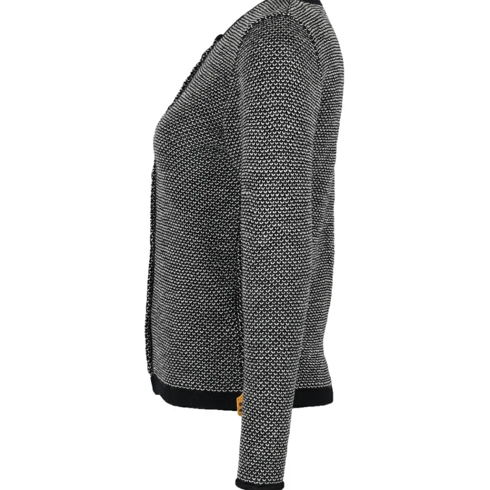 Das schwarz-weiße Design wirkt besonders edel und dank Knopfleiste kannst Du die Women’s Strickjacke Espelta offen oder geschlossen tragen.