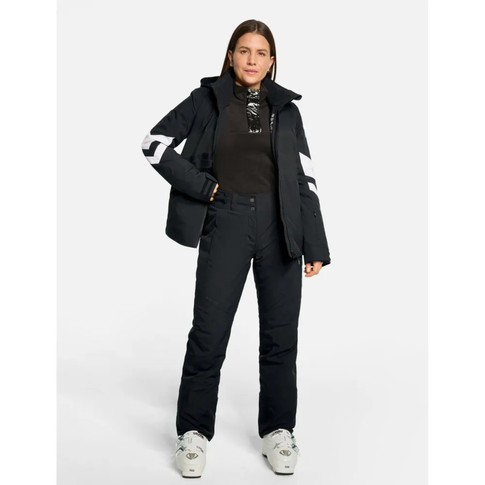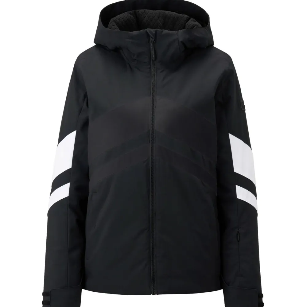 Die leichte Wattierung sorgt für angenehme Wärme, ohne die Bewegungsfreiheit einzuschränken. Das elastische Innenfutter unterstützt dynamische Bewegungen, während praktische Details wie eine feste, verstellbare Kapuze, elastische Ärmelinnenbündchen und eine integrierte Skipasstasche den Komfort auf der Piste erhöhen.