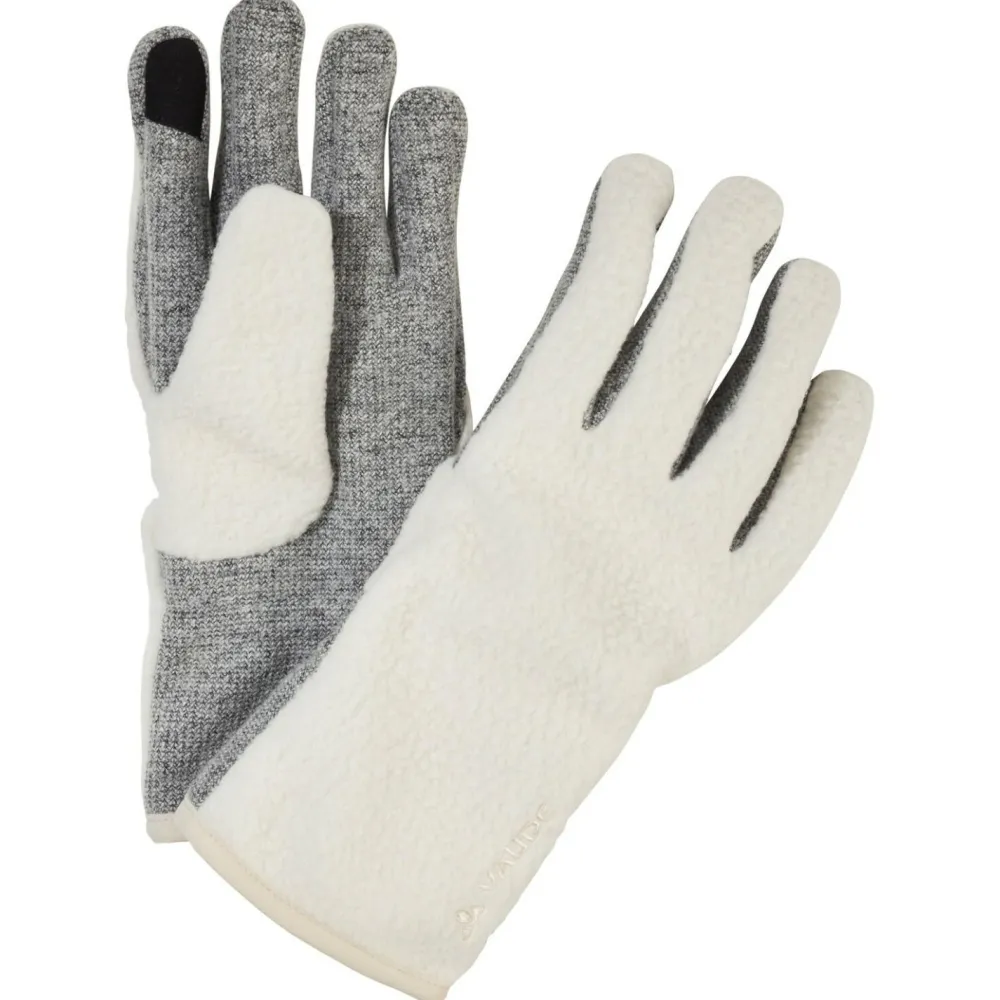 Die Women’s Tinshan Gloves V von Vaude sind warme und weiche Wollmix-Handschuhe für lange Wintertage im Freien. Ihr Futter ist aus aus recyceltem Polyester hergestellt und wird ergänzt von einem weichen Teddy-Fleece in Kombination mit wolligem Softshell-Material. Dieser Mix sorgt nicht nur für Wärme, sondern auch für Wetterfestigkeit und wohliges Tragegefühl. Die langen Bündchen mit den Gummibändern an den Handgelenken sorgen derweil für den jederzeit guten Sitz. Die Daumen und Zeigefinger sind mit Fingerspitzen ausgestattet, die die Touchscreen-Bedienung problemlos möglich machen. Kleine aber feine Design-Extras wie das gestickte Logo machen den tollen Eindruck der Tinshan Handschuhe perfekt!
