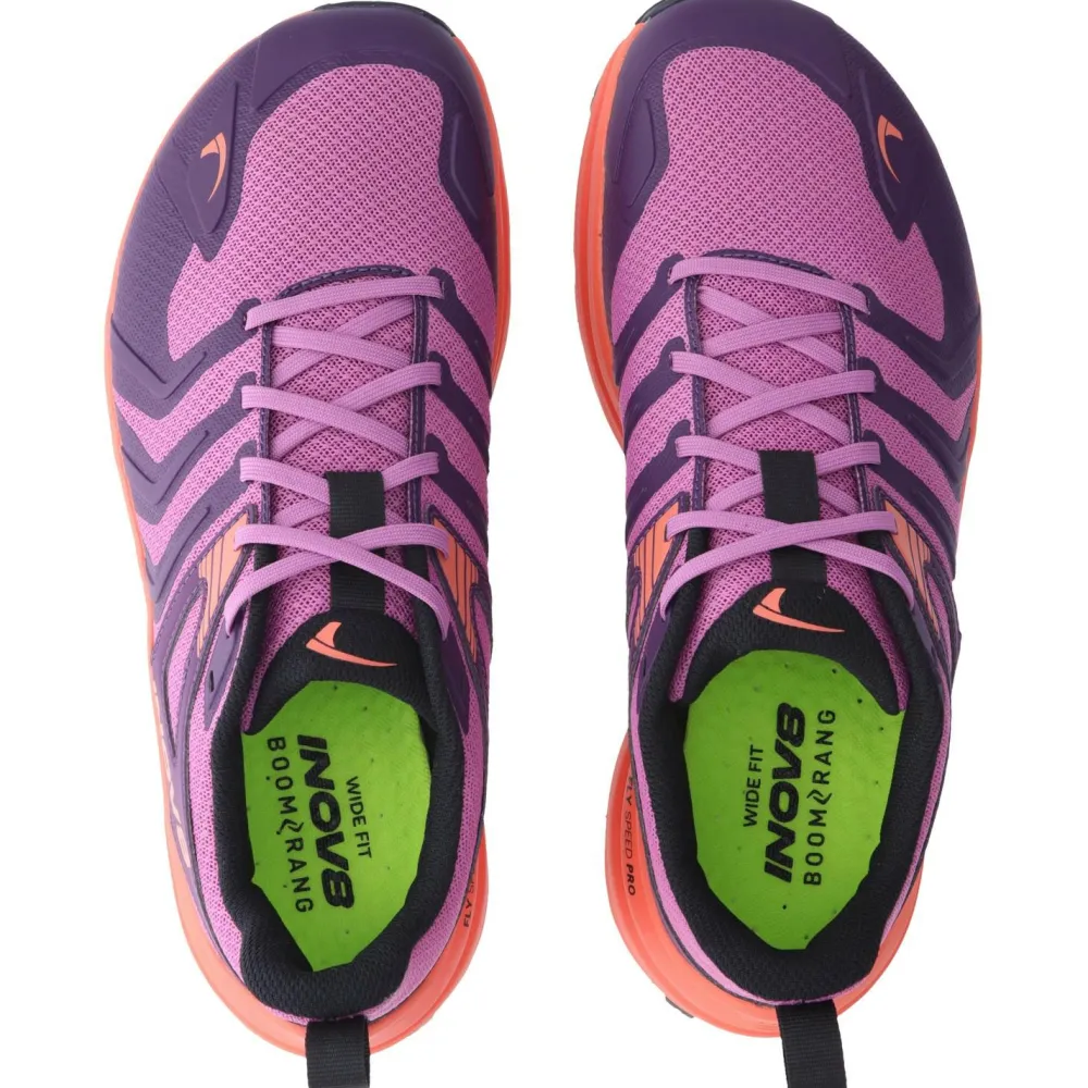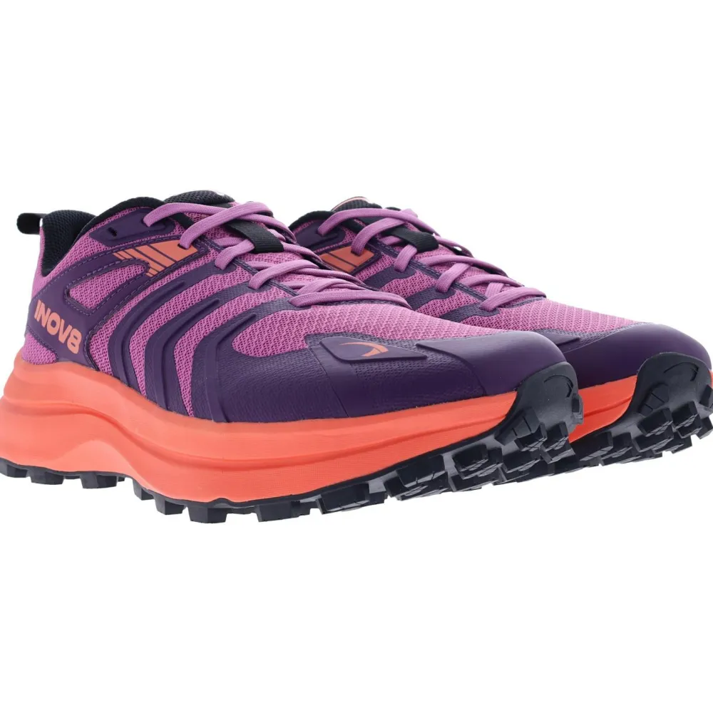 Die Inov8 Women’s TrailTalon Max sind gemacht für alle, die auf langen Trailruns Wert auf Komfort und Performance legen. Mit der Flyspeed-Zwischensohle profitierst Du von einer leichten, aber dennoch stabilen Dämpfung, die auch auf unebenen Pfaden ein gutes Gefühl für den Untergrund vermittelt. Die Graphene Grip-Außensohle bietet Dir zuverlässigen Halt, egal ob der Weg matschig, steinig oder verwurzelt ist. Die Kombination aus 6 mm Sprengung und 6 mm Stollentiefe unterstützt Dich bei jedem Schritt.