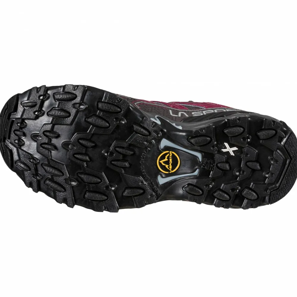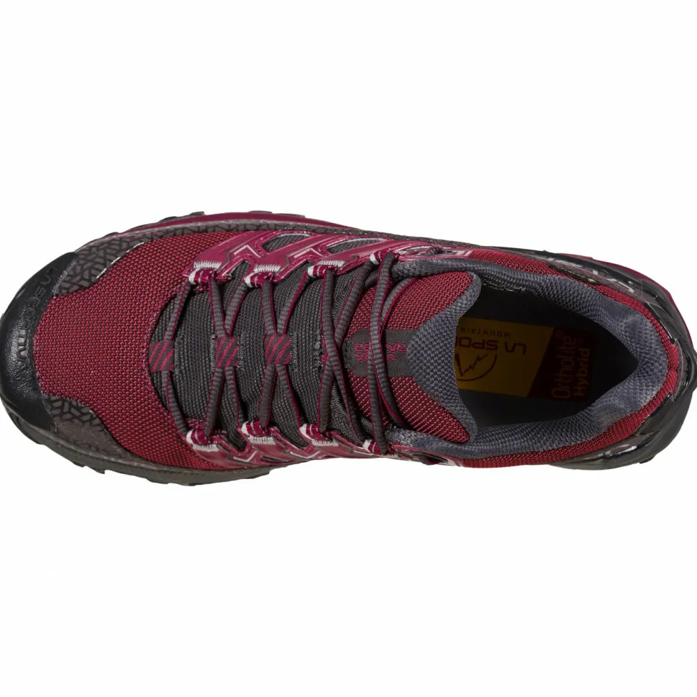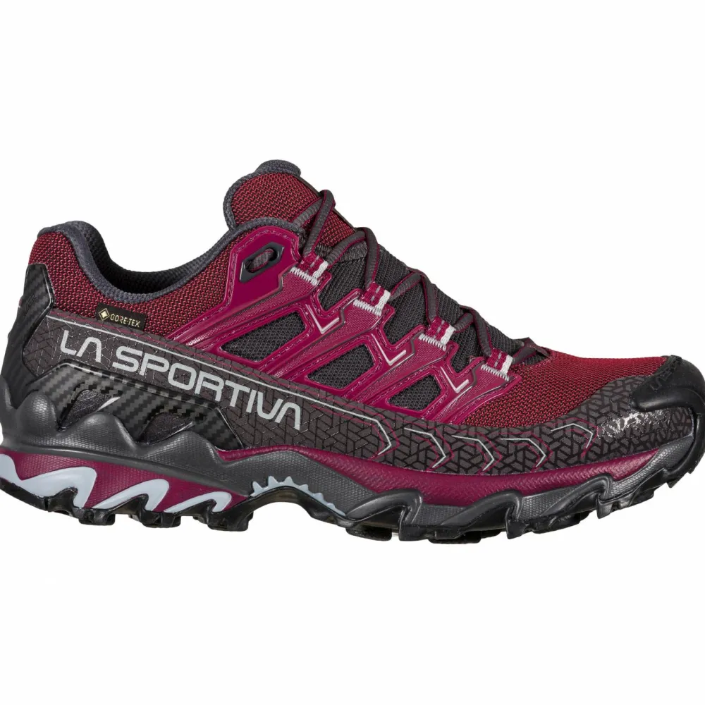 Mit dem Trailrunningschuhe Women’s Ultra Raptor II GTX von La Sportiva trotzt Du dem schlechten Wetter! Dank GORE-TEX bleibt Dein Fuß zuverlässig trocken. Zudem wird Feuchtigkeit zügig nach außen abgeleitet. Der Schuh ist mit einer robusten Laufsohle ausgestattet, die Grip liefert und die Bremswirkung bergab optimiert. Ihre multidirektionalen Stollen geben Dir die nötige Sicherheit. Dämpfung und ein natürliches Abrollverhalten liefern die Zwischensohle und die Ortholite Einlegesohle. Dein Lauf ist effizient und die Energie wird vorteilhaft zurück geführt. Dank Verstärkungen an den Zehen und Fersen bist Du im Gelände gut geschützt. Ideal für unwegsames Terrain!