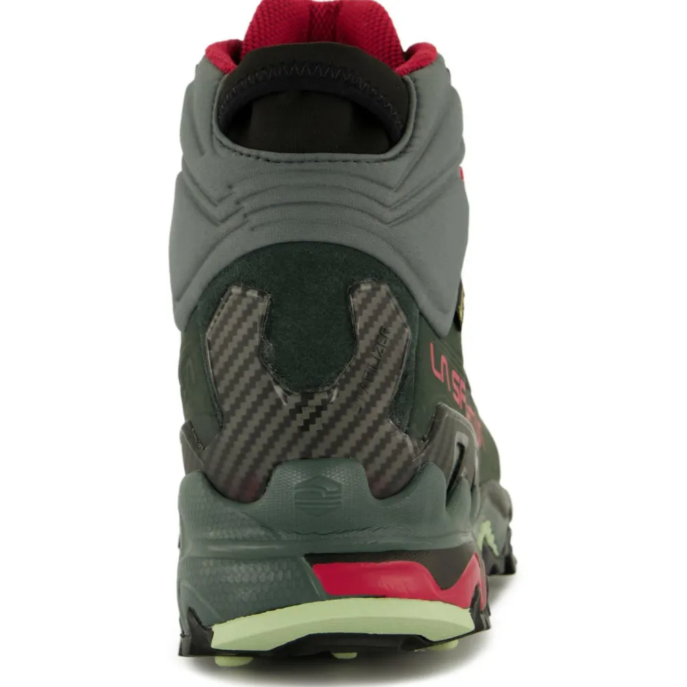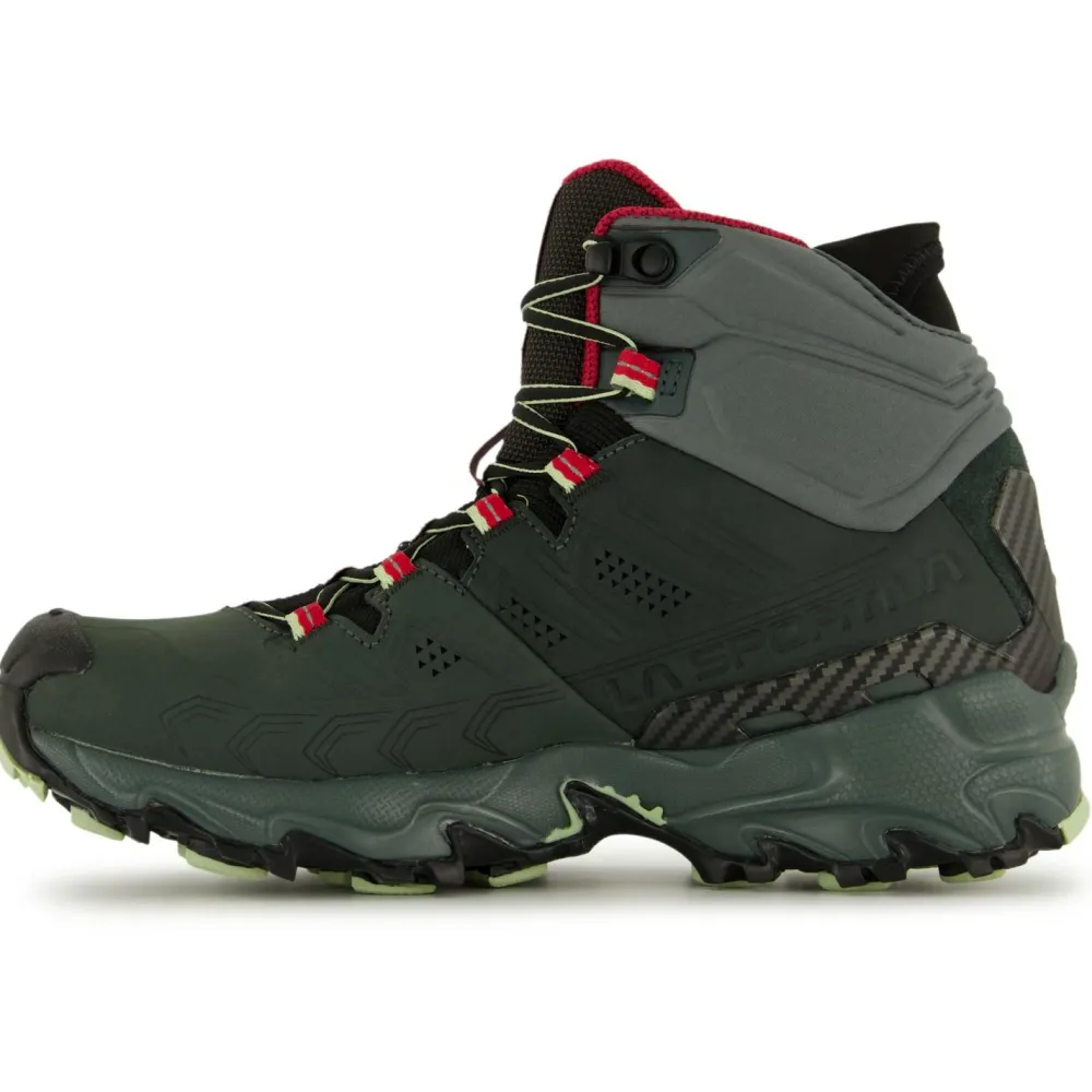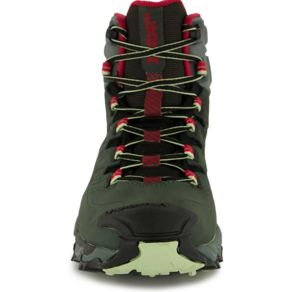 Die Version des Women’s Ultra Raptor II Mid Leather Wide GTX von La Sportiva mit Obermaterial aus Nubuk-Leder ist ideal für den Fast Hiking-Einsatz und Exkursionen mit leichter Ladung. Die halbhohen Schuhe sind wasserdicht und atmungsaktiv dank der GORE-TEX Extended Comfort-Membrane. Sie schützt die Füße vor Nässe und Kälte bei jeder Gelegenheit. Der Comfort Collar ist ein weicher Schutzkragen am Knöchel für leichteres Anziehen. Der Schaft legt sich eng ans Bein an, sodass beim Laufen weniger Dreck und Steinchen ins Innere gelangen können.