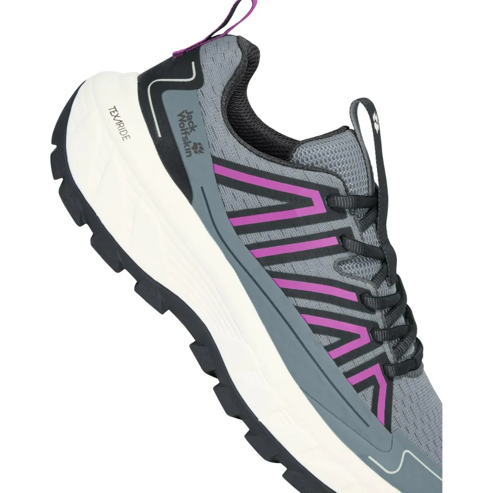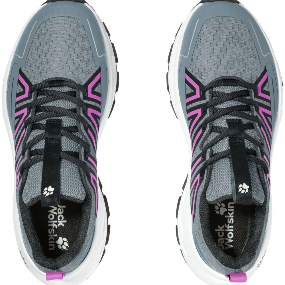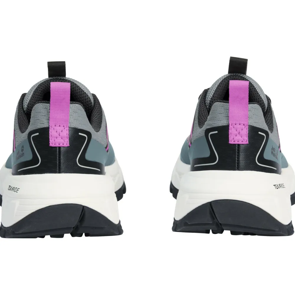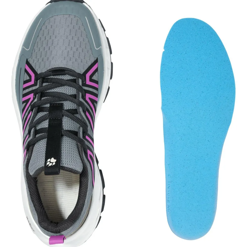 Die Women’s Wild Hike Low von Jack Wolfskin begleiten Wanderinnen zuverlässig auf ihren alpinen Wanderungen. Dank der gepolsterten Zehenspitze genießt Du Schutz vor unangenehmen Stößen, während die herausnehmbare Einlegesohle Dir erlaubt, den Schuh individuell an Deine Bedürfnisse anzupassen – besonders praktisch, wenn Du eigene Einlagen bevorzugst. Mit den Anziehschlaufen bist Du im Handumdrehen startklar. So kannst Du Dich voll auf das Naturerlebnis konzentrieren.