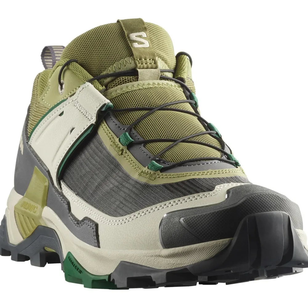 Mit einer verstärkten Ferse und Fußspitze bieten die Salomon X Ultra 5 Schuhe den nötigen Schutz vor Stößen und rauem Gelände. Die Contagrip-Sohle sorgt für hervorragende Traktion, sodass Du auch auf steinigen Wegen sicher unterwegs bist.