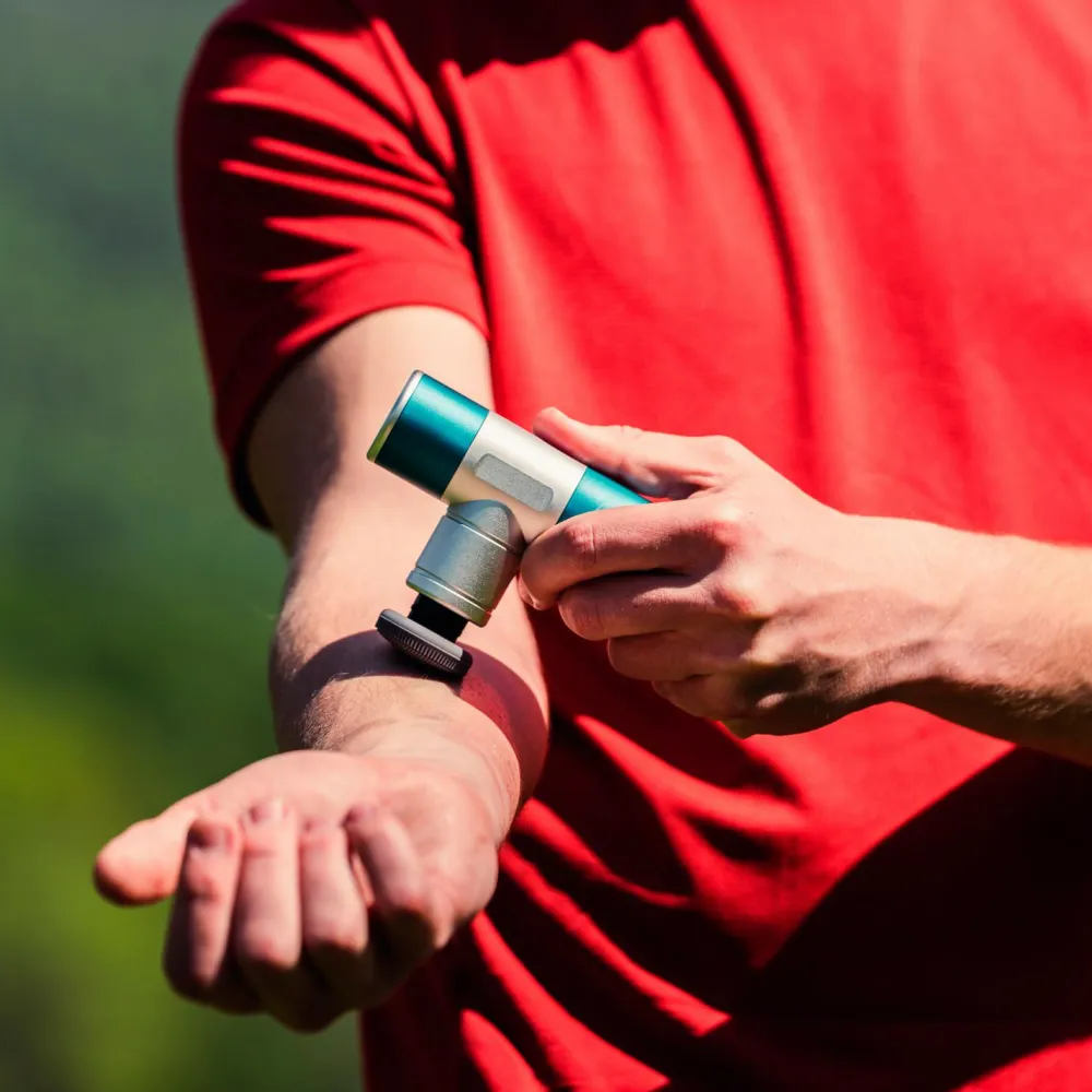Vier Geschwindigkeiten, fünf verschiedene Aufsätze und eine Akkulaufzeit von bis zu neun Stunden – das ist die Shock Mini Massagepistole von YY Vertical. Einfach mit einem USB-C Ladekabel aufladen und schon kannst Du Muskelverspannungen nach dem Sport ganz einfach lösen.