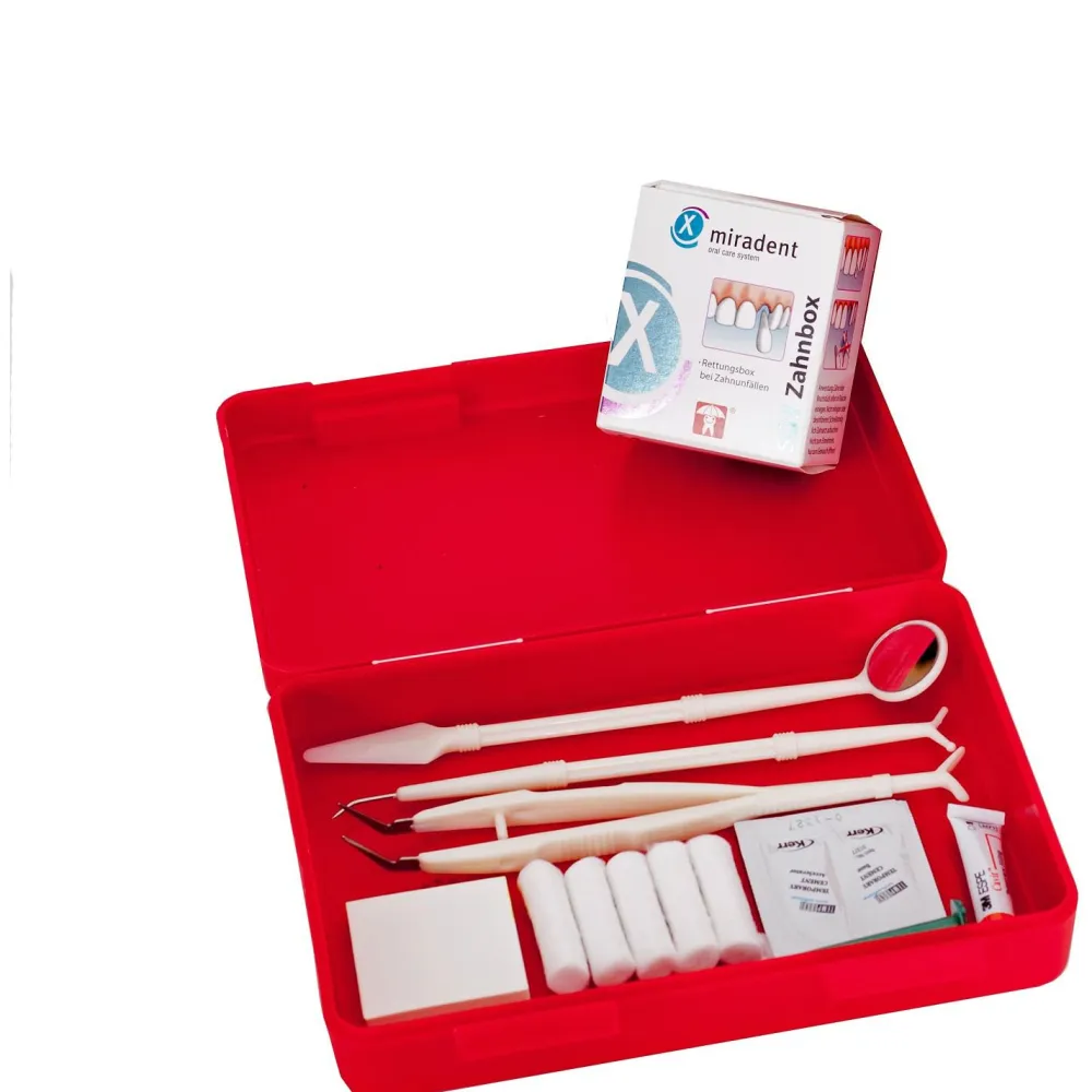 Der etwas umfangreichere Zahnnotfallkit für Deine Reise. Gedacht für die Erste Hilfe bei Notfällen, wenn kein Arzt zur Verfügung steht. Deshalb die ideale Ausstattung für Expeditionen und Fernreisen. Mit diesem Set kannst Du herausgefallene Kronen und Brücken wieder einsetzen, kariöse Zähne versorgen, Blutungen stillen, Zahnfüllungen ersetzen, überempfindliche Zähne behandeln oder auch ausgeschlagene Zähne für die Wiedereinsetzung aufbewahren (mit der neuen Zahnrettungsbox bis zu 24 h). Dieses Set ersetzt nicht den dann meist fälligen Zahnarztbesuch, hilft Dir aber, die meist sehr unangenehmen Folgen eines Zahnunfalls zu meistern und zu überbrücken.