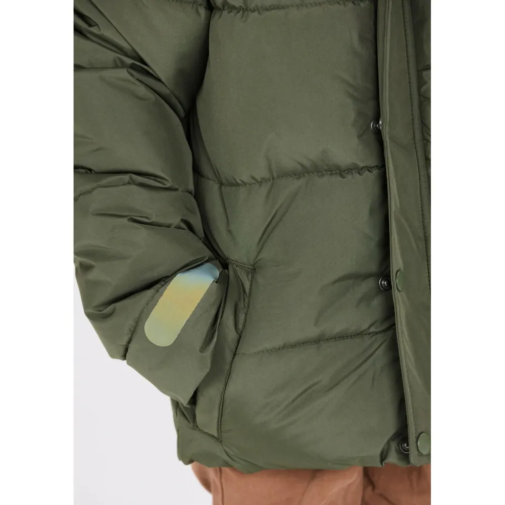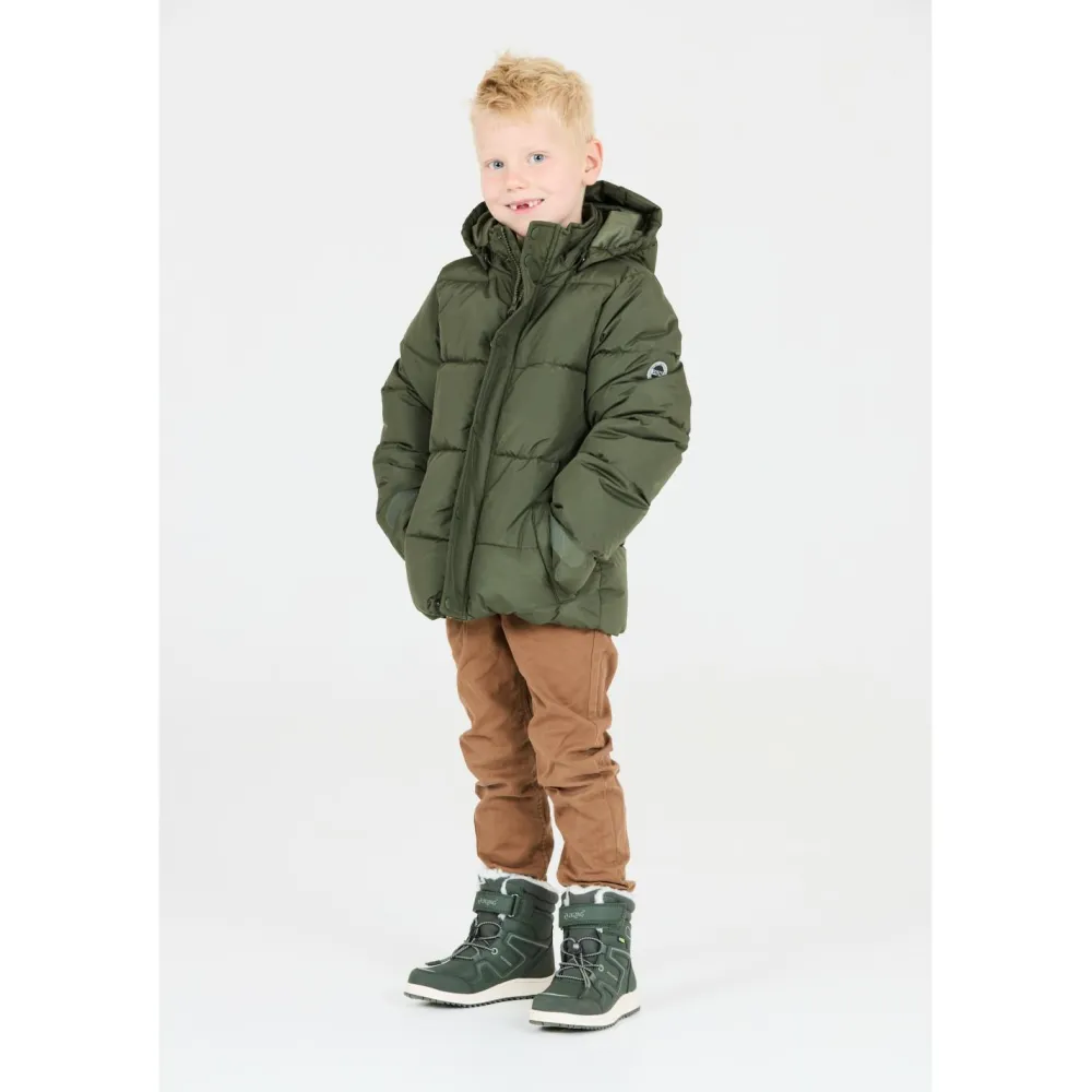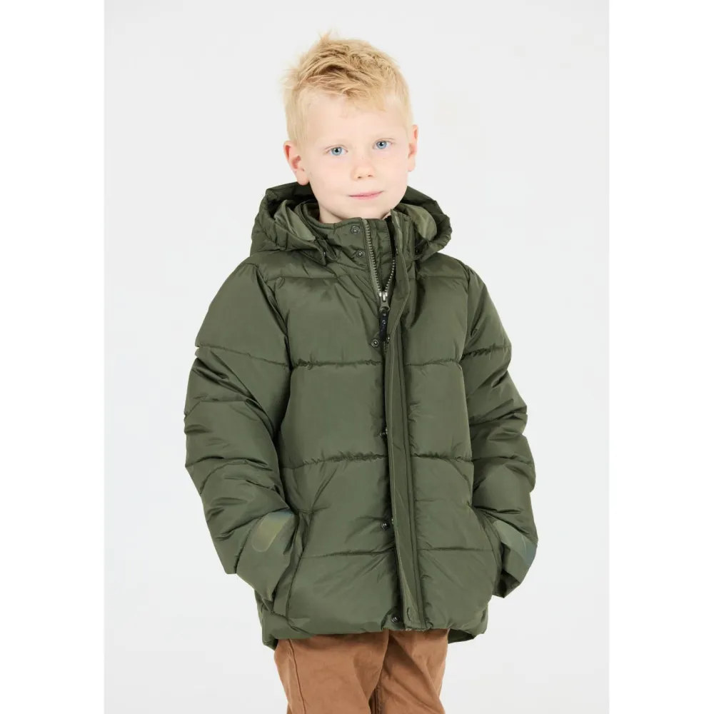 Für zusätzlichen Komfort lässt sich die großzügige Kapuze bei Bedarf abnehmen. Der hohe, weich gefütterte Stehkragen schützt Hals und Nacken zuverlässig vor Wind und Kälte – ideal für lange Tage im Freien oder den Weg zur Schule bei winterlichem Wetter.