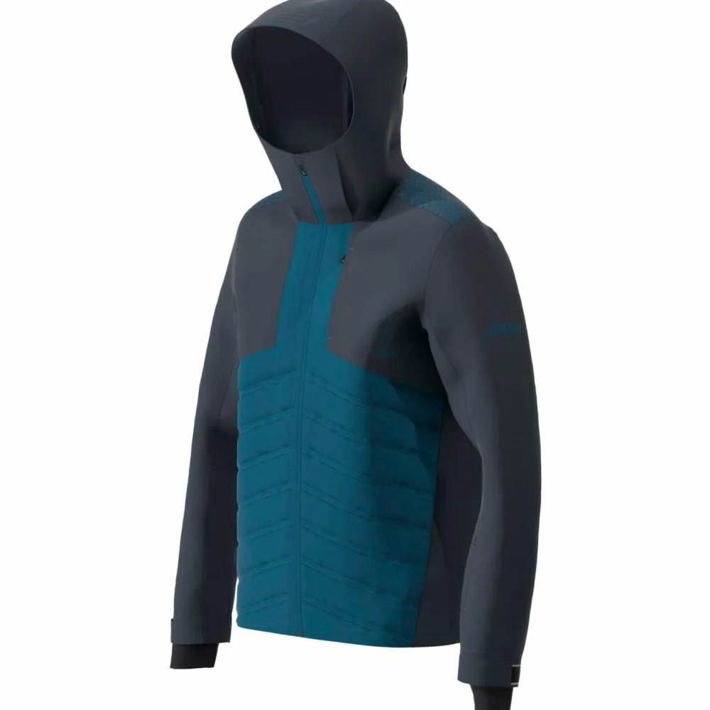 Sie ist vielseitig einsetzbar und freut sich, wenn es auf Skitour, zum Schneeschuhwandern, zum Langlaufen oder bei winterlichen Temperaturen auf Mountainbike-Touren geht. Sie hält den Oberkörper trocken und warm und sorgt für ein gutes Feuchtigkeitsmanagement. Die Vorderseite ist extra wattiert, um bei Gegenwind oder Abfahrtswind vor dem Auskühlen zu schützen. Die einstellbare Kapuze, der abriebfeste Print auf den Schultern, die verstellbaren Ärmelenden und die Innenbündchen machen die strapazierfähige Hybridjacke komplett. Für eingefleischte Bergfreunde ist sie ein absolutes Must-Have!